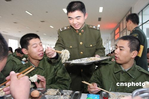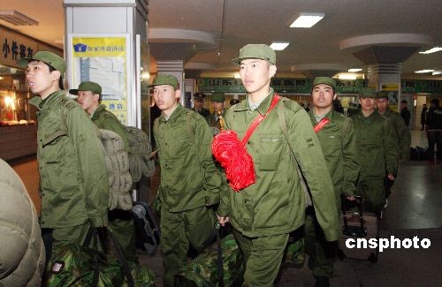 12月11日,來自江蘇、河北兩省的首批500余名新戰(zhàn)士抵達濟南軍區(qū)某部,開始軍旅生活。這些新戰(zhàn)士將集中進行3個月的軍事強化訓(xùn)練,在完成社會青年向合格軍人的轉(zhuǎn)變后,充實到基層執(zhí)勤第一線,擔(dān)負起維護濟南社會穩(wěn)定、保衛(wèi)人民生命財產(chǎn)安全的神圣職責(zé)。中新社發(fā) 梁志杰 攝
