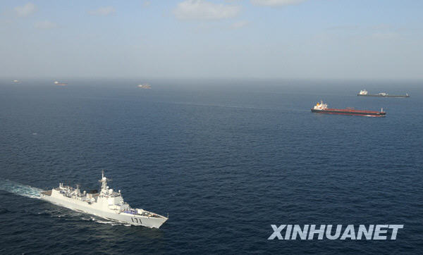2月18日,中國海軍編隊成功護送13艘商船安全駛出亞丁灣,這是海軍編隊完成的第21批次護航任務(wù),也是執(zhí)行護航任務(wù)以來的最大規(guī)模的護航行動。船隊綿延10公里,場面蔚為壯觀。新華社記者 朱鴻亮 攝