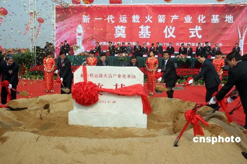 十月三十日,中國(guó)國(guó)防科學(xué)技術(shù)工業(yè)委員會(huì)、天津市政府官員同中國(guó)航天科技集團(tuán)公司及該公司所屬中國(guó)運(yùn)載火箭技術(shù)研究院負(fù)責(zé)人等,在天津?yàn)I海新區(qū)為中國(guó)新一代運(yùn)載火箭產(chǎn)業(yè)化基地?fù)]鍬奠基。中國(guó)新一代運(yùn)載火箭產(chǎn)業(yè)化基地項(xiàng)目,是新一代運(yùn)載火箭研制工程的基礎(chǔ)保證,也是后續(xù)批量生產(chǎn)和產(chǎn)業(yè)化、軍民結(jié)合的航天高科技重要基地。該項(xiàng)目總投資約數(shù)十億元人民幣,總占地面積約三千畝,分為一期工程和二期工程。建成后將滿足中國(guó)未來(lái)三十至五十年發(fā)展空間技術(shù)及和平利用空間的需要,實(shí)現(xiàn)運(yùn)載技術(shù)跨越式發(fā)展和航天可持續(xù)發(fā)展,對(duì)引領(lǐng)中國(guó)高科技產(chǎn)業(yè)發(fā)展有著重大的輻射和推動(dòng)作用。中新社發(fā) 孫自法 攝