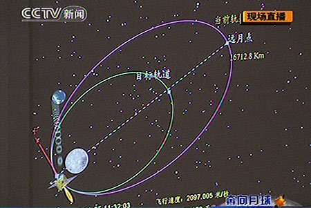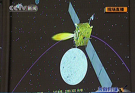 11月5日11時15分,嫦娥一號衛(wèi)星主發(fā)動機點火,第一次近月制動開始。