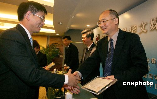 十一月三十日,“第三期海外華文媒體高級研修班”在北京結(jié)業(yè),國務(wù)院僑辦副主任趙陽(右一)等出席結(jié)業(yè)式并為學(xué)員頒發(fā)結(jié)業(yè)證書。中新社發(fā) 張勤 攝