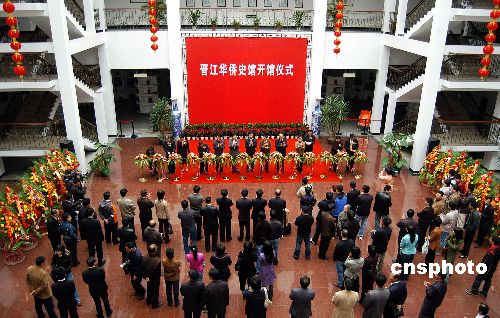 十二月五日,閩南“晉江華僑史館”在福建晉江博物館隆重開館。華僑史館共分為《海天萬里故園情—晉江華僑華人歷史展》和《晉臺(tái)緣港澳情—晉江港澳臺(tái)同胞展》兩個(gè)永久性展覽,展覽面積一千八百平方米,充分展示晉江先人飄洋過海,闖蕩打拼的奮斗歷程和積淀下來的拼搏文化,激勵(lì)更多的后人樹立和發(fā)揚(yáng)愛拼敢贏的晉江精神。中新社發(fā) 傅丹丹 攝