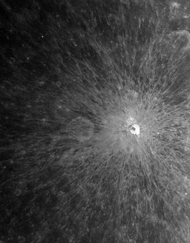 中國(guó)國(guó)家航天局今天向媒體發(fā)布信息說(shuō),“嫦娥一號(hào)”衛(wèi)星CCD相機(jī)已對(duì)月球背面進(jìn)行成像探測(cè),并獲取了月球背面部分區(qū)域的影像圖。此圖顯示的是月球背面Lents撞擊坑附近一個(gè)典型的輻射線撞擊形貌,坑緣直徑約30km,從撞擊坑中心放射狀拋射大量高亮物質(zhì)(根據(jù)區(qū)域地質(zhì)背景,應(yīng)該為基性斜長(zhǎng)巖碎屑),該類撞擊坑形成年代通常較晚。本圖是由5軌CCD正視影像數(shù)據(jù)拼接而成的,數(shù)據(jù)獲取時(shí)間為2007年12月4日。