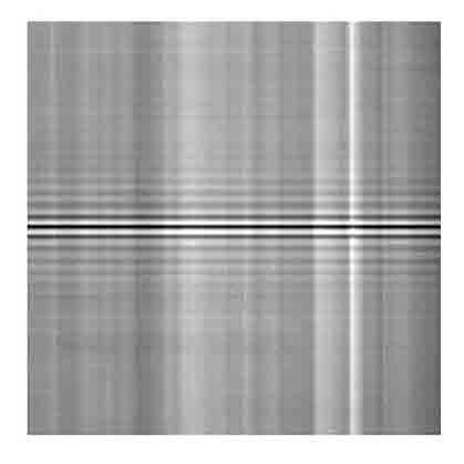圖1、干涉圖(橫軸為空間像元,縱軸為干涉曲線采樣點數(shù),本圖是右圖從上向下第一行對應干涉圖)