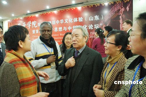 12月16日至18日,由中國(guó)國(guó)家漢辦主辦的全球孔子學(xué)院院長(zhǎng)研修班中華文化體驗(yàn)暨首屆“孔子思想與中華文化論壇”在山東大學(xué)舉行。活動(dòng)期間,來(lái)自18個(gè)國(guó)家34個(gè)孔子學(xué)院的44名外方院長(zhǎng)赴孔子故里——山東曲阜,參觀考察了孔府、孔廟和孔子研究院,體驗(yàn)中華文化,并出席首屆“孔子思想與中華文化論壇”,聆聽(tīng)山東大學(xué)儒學(xué)研究中心著名教授丁冠之和傅有德教授主講的《孔子,我們共同的老師》、《論言說(shuō):中西差異及其根源》的演講。背景資料:孔子學(xué)院是中外合作建立的非營(yíng)利性教育機(jī)構(gòu),其宗旨和使命是增進(jìn)世界人民對(duì)中國(guó)語(yǔ)言和文化的了解,發(fā)展中國(guó)與外國(guó)的友好關(guān)系,促進(jìn)世界多元文化發(fā)展,并以東方圣人孔子的名字命名。從2004年開(kāi)始,中國(guó)已在64個(gè)國(guó)家和地區(qū)建立210所孔子學(xué)院(包括孔子課堂),其中125所已開(kāi)班授課。此外,還有61個(gè)國(guó)家的200多個(gè)機(jī)構(gòu)提出開(kāi)辦申請(qǐng)。中新社發(fā) 金云 攝