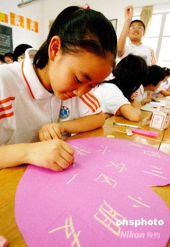 5月26日,為四川地震災(zāi)區(qū)小朋友捐款27000元的浙江義烏稠州中學(xué)714班學(xué)生王慧婷,在學(xué)校舉行的“與災(zāi)區(qū)小朋友同樂”主題班會(huì)上,做起心愿卡,祝愿四川地震災(zāi)區(qū)小朋友“六一”快樂。王慧婷在為四川地震災(zāi)區(qū)小朋友捐款中,她雖捐出所有零用錢,但總覺得少。于是打起了家長(zhǎng)為她赴英國(guó)夏令營(yíng)已交的27000元錢主意,想把這筆錢捐給四川地震災(zāi)區(qū)小朋友。放學(xué)回家后,她試探地把“放棄赴英國(guó)夏令營(yíng),將27000元費(fèi)用全部捐給地震災(zāi)區(qū)”的想法告訴父親,她的想法得到全家人支持。第二天王慧婷在父親陪同下,到學(xué)校把27000元錢拿回來(lái),轉(zhuǎn)手捐給了四川地震災(zāi)區(qū)的小朋友。中新社發(fā) 張建成 攝