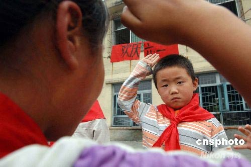 6月1日,四川什邡市湔氐鎮(zhèn)中心小學、龍居中心小學等地震災區(qū)的孩子,過了一個特殊的六一國際兒童節(jié)。中新社發(fā) 陳文 攝