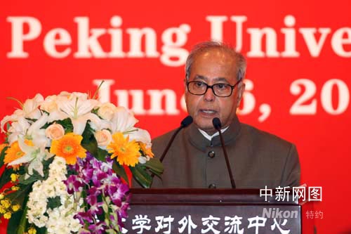 圖:印度外交部部長(zhǎng)穆克吉在北大發(fā)表演講