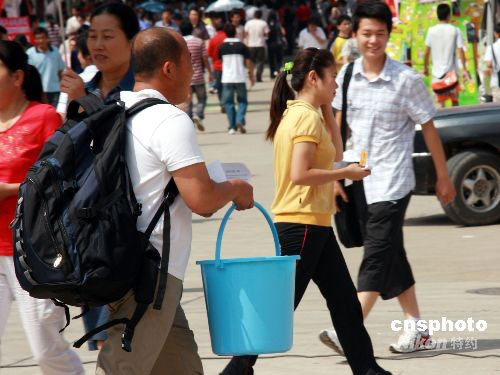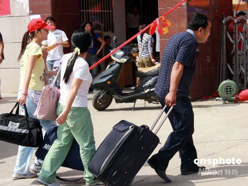 9月6日,在安徽省淮北煤炭師范學(xué)院,許多學(xué)生家長為子女攜帶生活用品,辛苦護送其入學(xué)。中新社發(fā) 萬善朝 攝