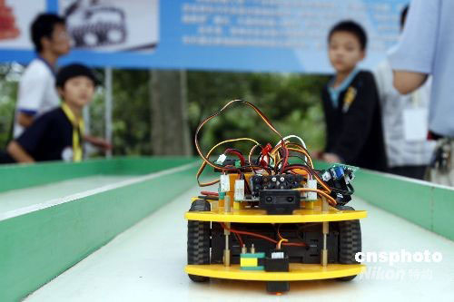 9月18日,第十屆中國科協(xié)年會科普主題廣場活動在鄭州綠城廣場舉行。當(dāng)日鄭州中學(xué)生在測試機(jī)器人的行走情況。中新社發(fā) 慎重 攝