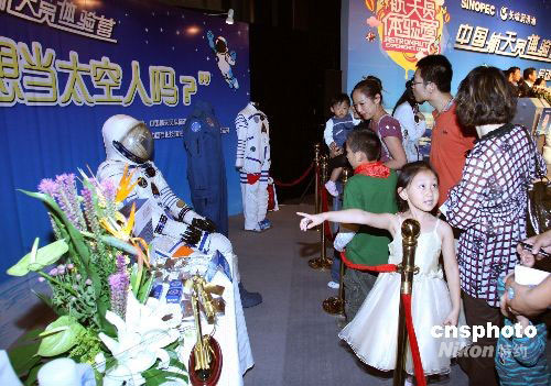 9月23日,“中國(guó)航天員體驗(yàn)營(yíng)”活動(dòng)在北京天文館舉行啟動(dòng)儀式,現(xiàn)場(chǎng)展出的航天員專用出征服倍受關(guān)注。體驗(yàn)營(yíng)將通過(guò)全民海選方式選拔一批航天愛(ài)好者,于11月14日在中國(guó)航天城展開(kāi)為期三天的體驗(yàn)活動(dòng)。獲選的營(yíng)員將首次走進(jìn)神七航天員的訓(xùn)練生活,體驗(yàn)真實(shí)的太空訓(xùn)練科目,一圓航天夢(mèng)想。中新社發(fā) 廖文靜 攝