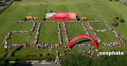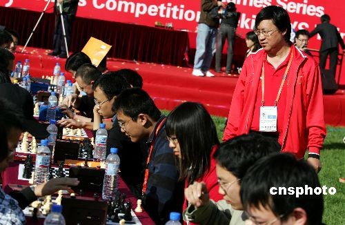 10月11日,第四屆“aigo杯”清華、北大愛國者象棋交流賽,在北京五洲大酒店舉行,來自清華、北大的800名學(xué)子展開一場激烈角逐,為觀眾奉獻(xiàn)一場宏偉壯觀的象棋對弈賽。作為第一屆智運(yùn)會的系列活動之一,交流賽得到國際智力聯(lián)盟、智運(yùn)會組委會和國家體育總局的支持。比賽現(xiàn)場對陣的棋桌組成巨大的“2008”字樣,場面壯觀。中新社發(fā) 富田 攝