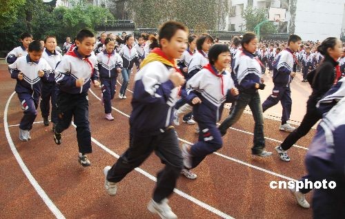 2008年10月27日,蘇州市東中市實驗小學(xué)的1400的多名學(xué)生舉行了陽光體育冬季長跑活動。通過開展冬季長跑活動,可以磨練青少年學(xué)生的意志品質(zhì),培養(yǎng)良好的鍛煉習(xí)慣,有效提高學(xué)生體質(zhì)特別是耐力素質(zhì)水平,進一步掀起陽光體育運動的新高潮,這也是根據(jù)國家有關(guān)部門的要求而進行的。中新社發(fā) 朱子寒 攝