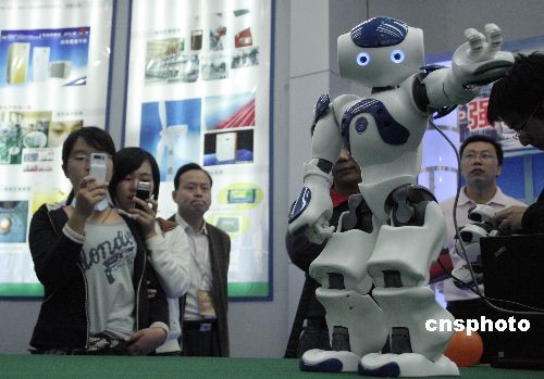 10月28日,中國(guó)首個(gè)“自主創(chuàng)新要素對(duì)接會(huì)”在安徽合肥國(guó)際會(huì)展中心開(kāi)幕。世界科技城市聯(lián)盟的會(huì)員城市、各國(guó)駐華科技參贊以及金融機(jī)構(gòu)、各類風(fēng)險(xiǎn)投資機(jī)構(gòu)等紛紛參加本屆對(duì)接會(huì)。圖為中國(guó)科技大學(xué)制造的會(huì)跳舞唱歌的藍(lán)鷹機(jī)器人吸引了眾多參展人員駐足拍照。中新社發(fā) 張婭子 攝