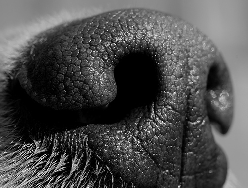 據(jù)測量,人類的嗅覺細(xì)胞有500萬個,而狗的嗅覺細(xì)胞則有2億多個,是人類的40倍,可以分辨大約2萬種氣味,經(jīng)過特殊訓(xùn)練的狗,可以分辨出犯罪分子攜帶的可卡因,甚至可以分辨出癌癥的氣味。人們研究的焦點始終聚集在狗的嗅覺器官如何捕捉氣味,無人關(guān)注狗鼻子上的粘液。傳統(tǒng)的觀點認(rèn)為,狗的鼻子保持濕潤是身體健康的一種表現(xiàn),但是現(xiàn)在科學(xué)家發(fā)現(xiàn)狗鼻子上的粘液層還有助于它們辨別氣味。