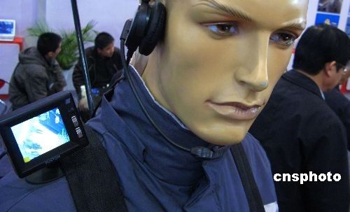 12月9日,2008年中國國際社會公共安全產(chǎn)品博覽會在北京中國國際展覽中心開幕。圖為來自臺灣的利凌(LILIN)公司,展示無線單兵(紅外感應(yīng)攝影機(jī))音視頻監(jiān)控指揮系統(tǒng)和視頻服務(wù)器等技術(shù)系統(tǒng)。該機(jī)可以通過無線基站,將前方圖像傳遞到2000米范圍內(nèi)的后方終端系統(tǒng)。中新社發(fā) 鄒憲 攝