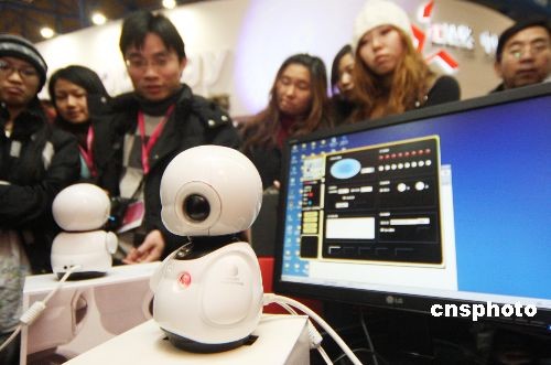 12月20日,一款能當寵物玩的“交互陪伴型機器人”亮相北京國際文博會,讓眾多觀眾愛不釋手。這種機器人小巧玲瓏,能夠自由完成規(guī)定動作,并且擁有表情跟隨心情的表達方式,可以通過網(wǎng)絡下載的情景來演繹動作。 中新社發(fā) 吳芒子 攝