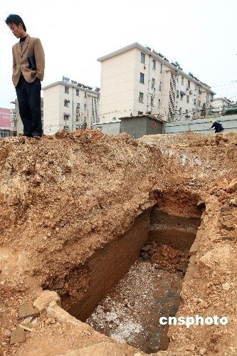 3月11日,安徽淮北市淮北商場建筑工地,考古人員正在對古漢墓進行發(fā)掘。據(jù)考古人員介紹,截至目前,已發(fā)現(xiàn)兩漢時期的磚室和土坑墓葬30座,清理出古墓葬6座,出土漢代玉器、青銅器和陶器50余件,這些出土文物對研究漢代的墓葬風(fēng)俗提供了實物依據(jù)。中新社發(fā) 謝正義 攝