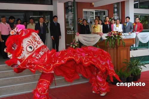 三月三十一日,位于泰國(guó)北部毗鄰清邁的南邦府嘎啦婭尼中學(xué)校園成為漢語(yǔ)和中國(guó)文化的舞臺(tái),當(dāng)?shù)氐暮⒆觽冇昧骼闹形,向遠(yuǎn)近的客人,展示著豐富多彩的中國(guó)文化技能,如舞獅子、剪紙、毛筆書(shū)法、太極劍等。來(lái)自北部各府以及曼谷的多所學(xué)校通力合作,將嘎啦婭尼的孔子課堂成立活動(dòng)搞得有聲有色。中新社發(fā) 顧時(shí)宏 攝