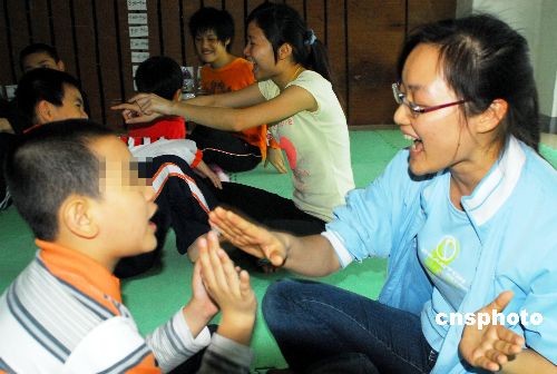2009年4月2日是第2個(gè)世界自閉癥日,海南省?谑懈骷姨亟膛嘤(xùn)機(jī)構(gòu)紛紛開展家長聯(lián)誼、趣味游戲等活動(dòng),讓親情和訓(xùn)練相結(jié)合敲開自閉癥孩子的“心門”。自閉癥也稱孤獨(dú)癥,是以嚴(yán)重孤獨(dú)、缺乏情感反應(yīng)、語言發(fā)育障礙、刻板重復(fù)動(dòng)作和對(duì)環(huán)境的奇怪反應(yīng)為特征的精神疾病。據(jù)統(tǒng)計(jì),目前中國約有各類自閉癥患者150萬人,其中兒童約有50萬人左右。中新社發(fā) 善平 攝