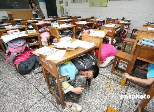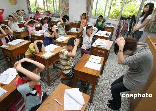 5月12日,重慶江北華新實(shí)驗(yàn)小學(xué)的孩子們在學(xué)習(xí)災(zāi)害發(fā)生時(shí)的緊急避難知識。當(dāng)日是首個“防災(zāi)減災(zāi)日”,重慶各學(xué)校紛紛進(jìn)行防災(zāi)避難課和災(zāi)害發(fā)生時(shí)的緊急避難及人員疏散演練,提高孩子們在災(zāi)害發(fā)生時(shí)的自我保護(hù)意識和掌握各種臨時(shí)避難方法。中新社發(fā) 賀終榮 攝