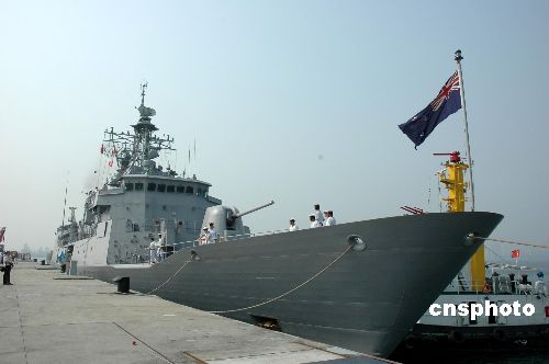 10月19日上午10時,新西蘭海軍“特卡哈”(Te Kaha)號護衛(wèi)艦(舷號F77)在新西蘭海上聯(lián)合作戰(zhàn)部隊司令大衛(wèi)·安森(David Anson)準將的率領(lǐng)下,駛抵中國海軍湛江軍港,開始對南海艦隊進行為期3天的友好交流。中方南海艦隊副參謀長么志樓少將在碼頭舉行儀式,歡迎新艦首次訪問湛江。中新社發(fā) 李根成 攝