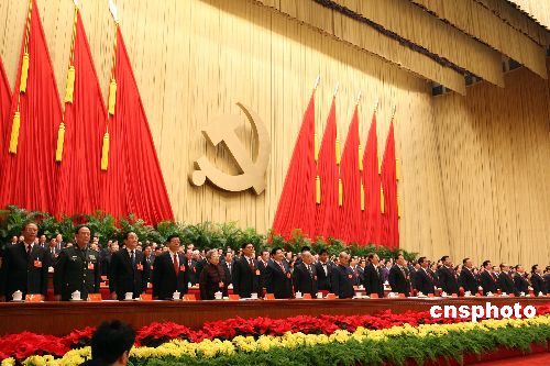 十月二十一日,中國共產(chǎn)黨第十七次全國代表大會(huì)在北京人民大會(huì)堂隆重閉幕。中新社發(fā) 毛建軍 攝