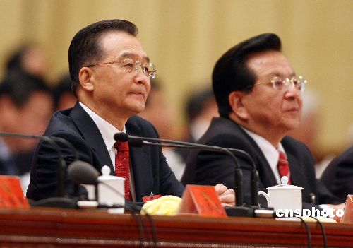 十月二十一日,中國共產(chǎn)黨第十七次全國代表大會(huì)在北京人民大會(huì)堂閉幕,溫家寶、曾慶紅出席會(huì)議。中新社發(fā) 毛建軍 攝