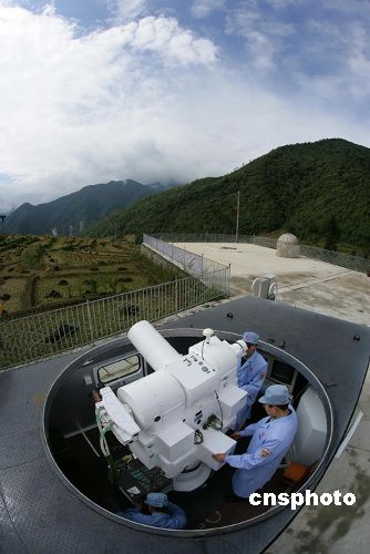 10月22日,西昌衛(wèi)星發(fā)射中心技術(shù)人員調(diào)試跟蹤火箭前期軌道的光學(xué)經(jīng)緯儀。中國(guó)國(guó)防科工委當(dāng)晚在北京宣布,“嫦娥一號(hào)”衛(wèi)星將于24日至26日在西昌衛(wèi)星發(fā)射中心擇機(jī)發(fā)射,首選發(fā)射窗口為24日18時(shí)左右。中新社發(fā) 秦憲安 攝