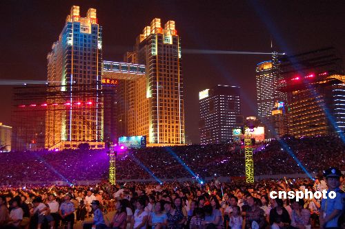 十月二十八日,第四屆中國—東盟博覽會開幕,當晚博覽會開幕式晚會暨南寧國際民歌藝術節(jié)在民歌廣場開幕,民歌廣場和周圍高樓燈光璀璨,夜景十分迷人。中新社發(fā) 劉萬強 攝