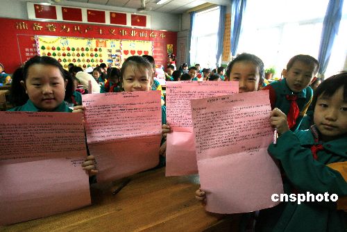 11月5日,“嫦娥一號”衛(wèi)星成功減速,進入月球軌道。山東師大附小為此舉辦了“嫦娥一號”主題慶祝儀式,師生們在祝賀“嫦娥一號”成功奔月的橫幅上簽字。孩子們還向研制“嫦娥一號”的科學(xué)家們寫了熱情洋溢的祝賀信,表達對他們的祝賀和自己要好好學(xué)習(xí)、建設(shè)祖國的決心。中新社發(fā) 周青先 攝