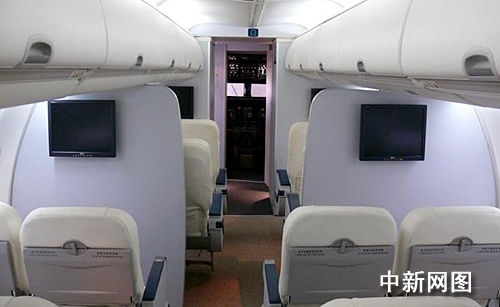中國首架自主知識產(chǎn)權(quán)的噴氣支線客機(jī)ARJ21艙內(nèi)布局。