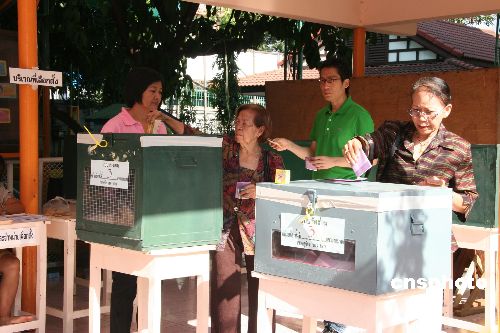 泰國新一屆國會下議院選舉二十三日上午八時開始在全國一百五十七個選區(qū)舉行,八萬多個投票站同時向選民開放投票。這是泰國歷史上第二十五次全國大選,也是泰國去年發(fā)生政變后首次舉行的新大選投票。據泰國選舉委員會介紹,大選投票將持續(xù)到十五時結束,共有約四十個政黨的五千多名候選人參加本次大選,角逐四百八十個下議院席位。除去上周已經參加提前投票的約三百萬名選民以外,當天共有合格選民四千二百多萬,有十個國家共向本次大選派出九十一名國際觀察員。本次大選預算約為二十億泰銖。中新社發(fā) 顧時宏 攝