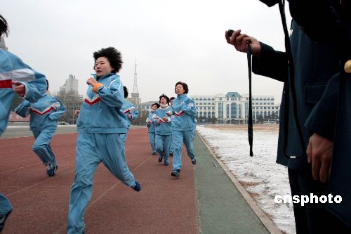 圖為1500米考試姑娘們分秒必爭。