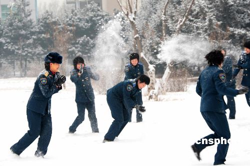 圖為大雪激起了姑娘們的童真,一場雪仗為校園帶來了勃勃生機(jī)。