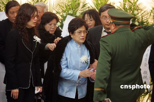 圖為孫道臨妻子王文娟(中)與女兒(左)在追悼會(huì)上。
