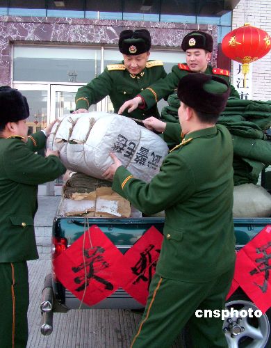 圖:牡丹江武警邊防官兵向南方災(zāi)區(qū)捐款捐物