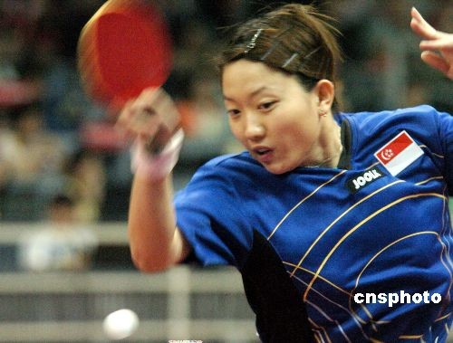 3月1日晚世乒賽女團(tuán)決賽中,新加坡隊(duì)1比3不敵中國(guó)隊(duì),奪得世乒賽亞軍。圖為李佳薇擊敗郭躍,為新加坡奪得1分。 中新社發(fā) 柯小軍 攝