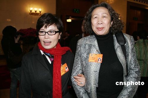 三月三日,在全國政協(xié)新委員名單上令人誤認(rèn)為是演藝明星范冰冰的俄語專家范冰冰(右)露真容,與中央電視臺新聞播音員李瑞英攜手進入北京人民大會堂,出席全國政協(xié)十一屆一次會議開幕會。范冰冰委員身高近一米七二,能說一口流利俄語,是中國國際廣播電臺俄語部主任、首席播音員。中新社發(fā) 潘索菲 攝