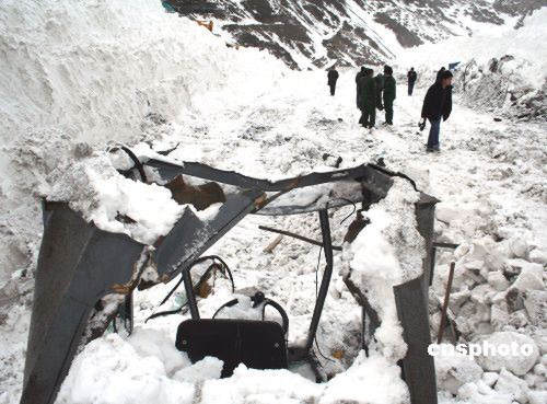3月16日,新疆天山果子溝通往事故現(xiàn)場的山路再次發(fā)生雪崩,阻斷了救援人員進(jìn)出的唯一通道,嚴(yán)重影響了救援工作的開展。到目前為止,初步核實位于新疆天山果子溝的西氣東輸二線工程一處隧道施工現(xiàn)場發(fā)生雪崩,有22人被困或掩埋,已有6人獲救,3人死亡,其余13人仍下落不明。中新社發(fā) 馬耀林 攝