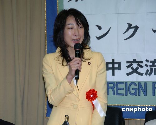 菊田真紀(jì)子在東京舉行的第三屆日本人漢語征文比賽頒獎典禮上致詞。中新社發(fā) 段躍中 攝