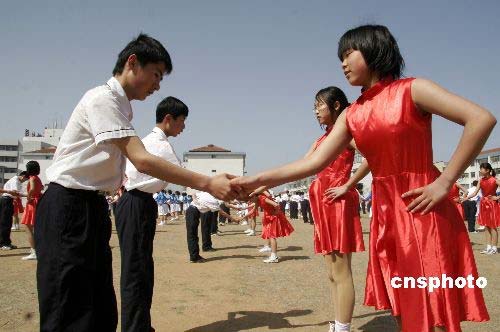 圖:山東威海舉辦迎奧運(yùn)校園集體舞大賽