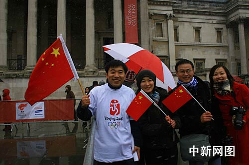 圖:倫敦特拉法加廣場上歡迎火炬的中國留學(xué)生(3)