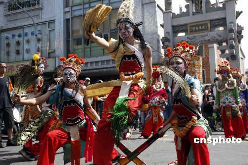 4月6日,臺南媽祖出游祭拜活動場面熱鬧。大天后宮俗稱臺南媽祖廟,建于清康熙23年(公元1684年),原為明寧靖王府邸,是鄭成功之子鄭經(jīng)為了表示對寧靖王朱由桂禮遇而建。后清將施瑯在寧靖王府內供奉媽祖并改為天后宮進行擴建。大天后宮歷經(jīng)數(shù)次整修,1985年以其歷史與文化地位被列為一級古跡,在臺灣將近400座媽祖廟中,具有尊貴地位,是島內第一座官建媽祖廟,也是唯一列入官方春秋祭典的媽祖廟。中新社發(fā) 杜洋 攝