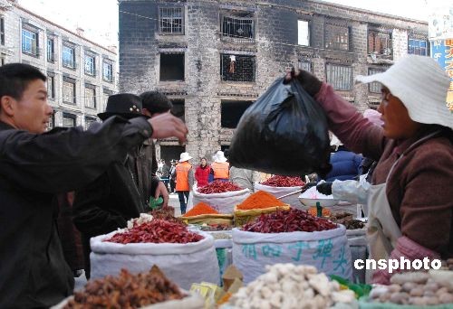 圖:暴力摧殘的拉薩沖賽康市場恢復營業(yè)