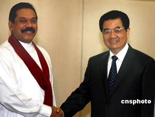 圖:胡錦濤會見斯里蘭卡總統(tǒng)拉賈帕克薩