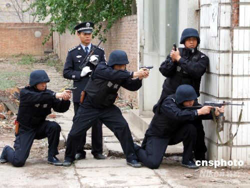 4月11日,河南濮陽市在一家廢棄的化工廠內(nèi)舉行了代號為“龍鄉(xiāng)衛(wèi)士一號”的反恐怖實戰(zhàn)演練。實戰(zhàn)演練演示了處置危險化學品爆炸火災(zāi)、緝拿恐怖分子等反恐行動。演練共有200余名公安干警、駐軍部隊、武警和消防官兵,以及衛(wèi)生、環(huán)保、電力等人員參加。通過實戰(zhàn)演練的舉行,展現(xiàn)了軍警民協(xié)同作戰(zhàn),處置恐怖襲擊事件和重大突發(fā)事件的能力和水平。中新社發(fā) 劉敬寬 攝