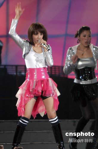 4月10日,在以“牡丹盛開(kāi)迎奧運(yùn)”為主題的河南省第26屆洛陽(yáng)牡丹花會(huì)慶典晚會(huì)上,臺(tái)灣人氣歌手蔡依林、潘瑋柏激情獻(xiàn)唱。中新社發(fā) 張曉理 攝