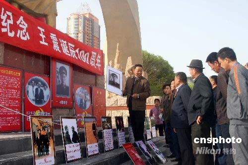 2008年4月11日是偉大的無(wú)產(chǎn)階級(jí)革命家、政治家、軍事家,原西北野戰(zhàn)軍第一兵團(tuán)司令員兼政委王震誕辰100周年紀(jì)念日。當(dāng)天,曾多次親耳聆聽(tīng)過(guò)王震將軍教誨的退伍老兵、新疆庫(kù)爾勒市民陳伯壽,將自己精心收集整理的王震畫像等40多幅紀(jì)念圖板,擺放在人民廣場(chǎng)供廣大市民觀看接受教育,并以此種形式表達(dá)新疆庫(kù)爾勒老兵對(duì)王震將軍的一片緬懷思念之情。中新社發(fā) 吳寬宏 攝