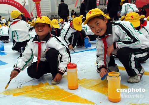 圖:河南濟(jì)源“愚公娃”繪制巨型福娃(2)